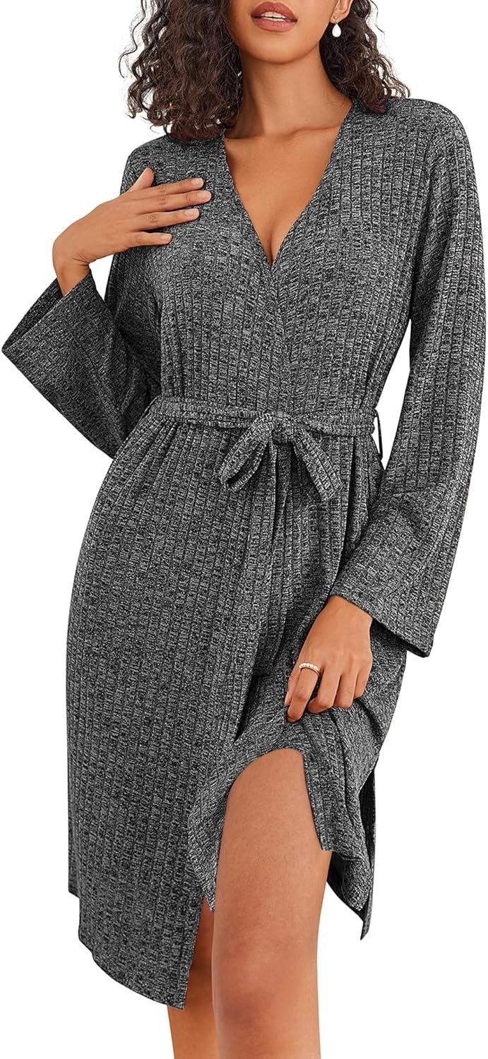 Occasion: This soft ribbed knit robe is a great choice for relaxed mornings and evenings. Perfect for loungewear, sleepwear,pajamas, maternity wear, travel, spa robe, and slumber parties. Perfect birthday gift/anniversary.