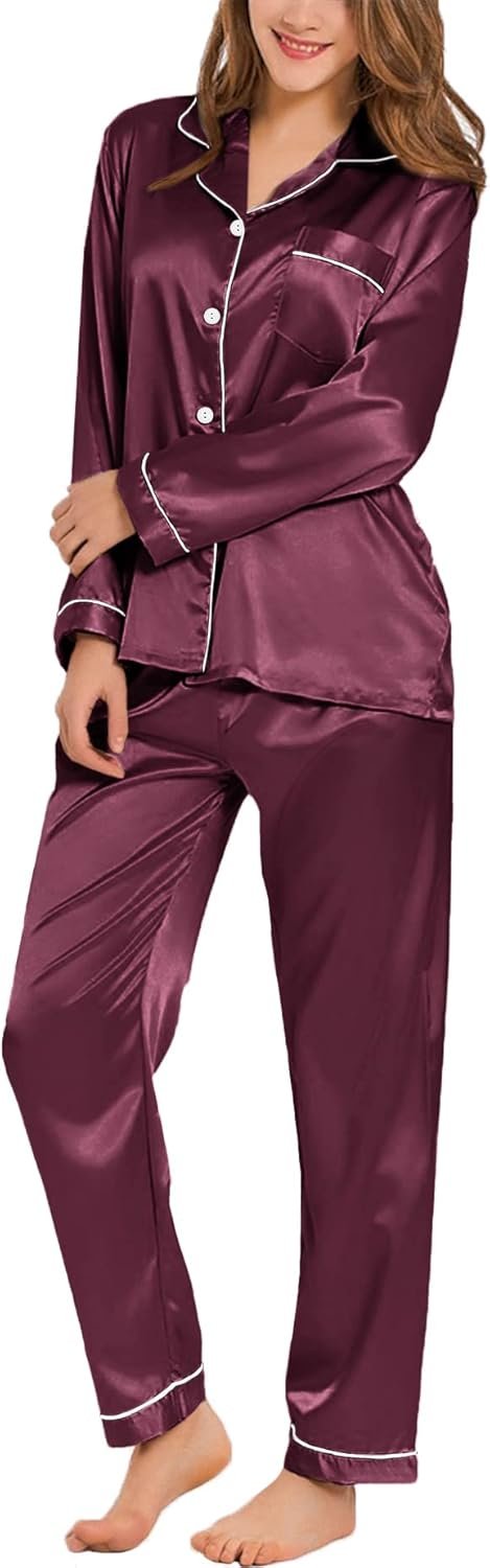 Occasion: Women’s Long Sleeve Silk Satin Pajamas Set, which is suitable for daily wearing and easy to match. Comfortable and suitable for lounging and sleeping, pajama party, girls day, bridal sleepwear, indoor, living room, bedroom, hotel, vacation, travel, and daily sleepwear.